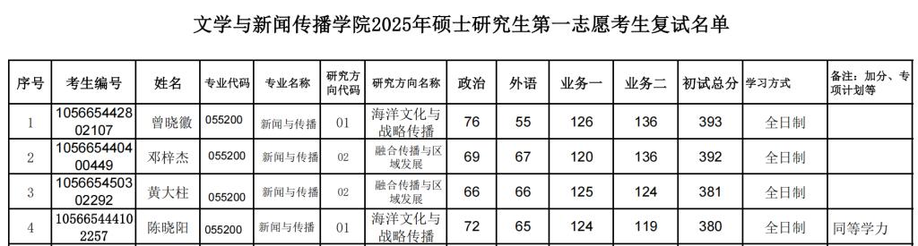 我院对复试名单(包括考生姓名、考生编号、初试各科成绩等信息)、拟录取名单(包括考生姓名、考生编号、初试成绩、复试成绩、总成绩等信息)于学院官网进行公示,对参加专项计划、享受加分或照顾政策的考生相关情况,在公布考生名单时同时进行说明。公示时间不少于7日。公示期间名单不得修改,如有变动,须对变动部分作出专门说明,并对变动内容另行公示7日。