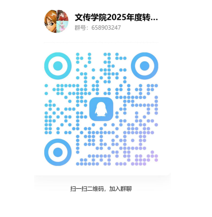 (一)申请人应于5月26日(星期一)前加入“文传学院转入学生QQ群”(群号:658903247,扫描文末二维码入群),学院转专业工作联系人通过该QQ群公布考核方式、时间、地点、结果等信息。