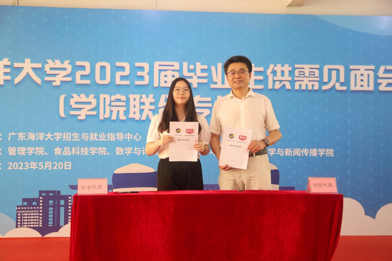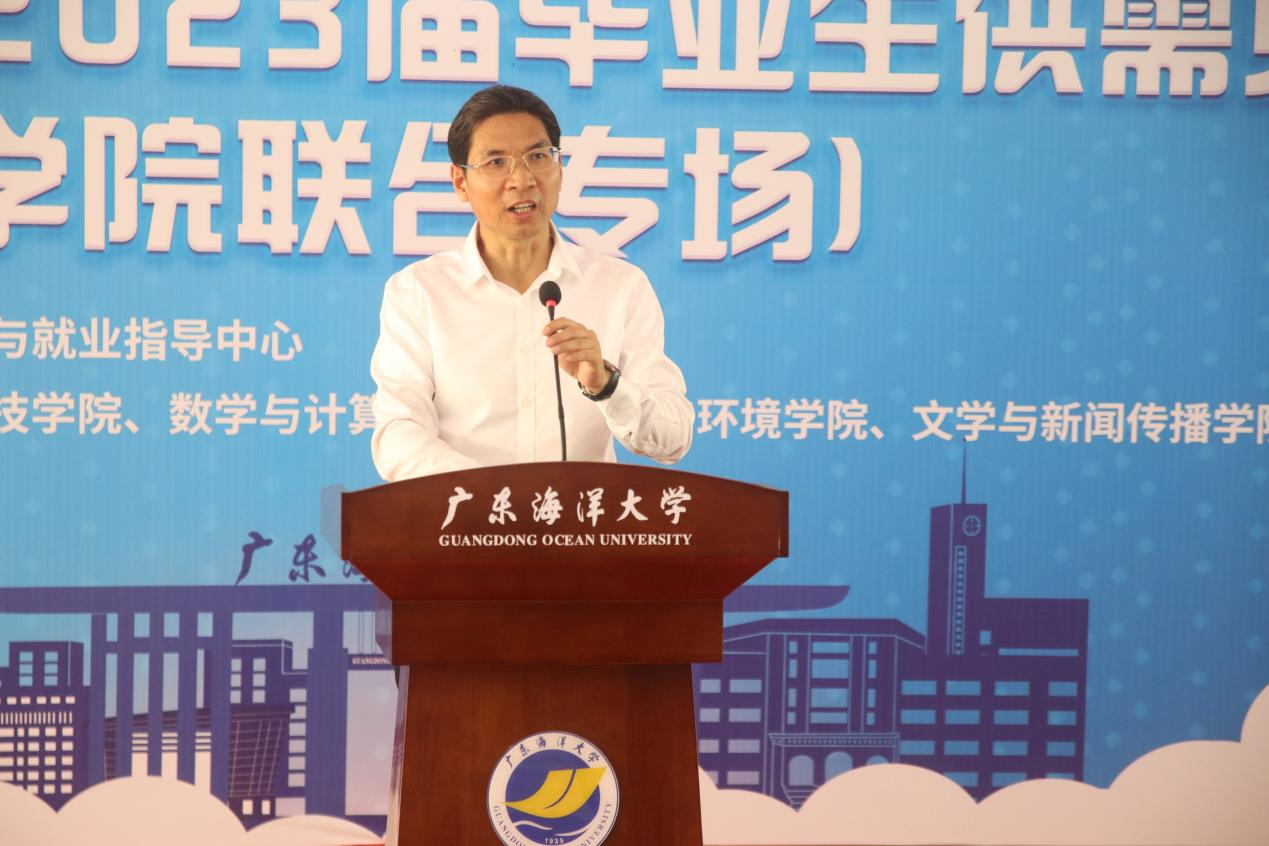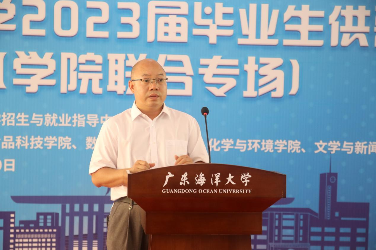 开幕式首先由校党委副书记林晓敏致辞。他简要介绍了学校的发展情况与2023届毕业生的就业情况,强调“国以人兴,政以才治”,对各学院、用人企业、毕业生提出了三点希望:一是希望各学院进一步深化校企合作,积极对接企业人才需求,搭建好供需的桥梁,助力我校毕业生高质量就业;二是希望企业为高质量发展储备高质量人才,充分挖掘学生的潜力,最大限度招收接纳我校毕业生,用心用情用力用好人才,留住人才,实现经济发展和扩大就业的并举双赢;三是希望毕业生转变观念,树立正确的就业观,既要仰望星空,更要脚踏实地,及时适当调整就业预期,先就业再择业,勇于到企业一线和艰苦的岗位去锻炼,敢于到新的行业去打拼,以诚实的劳动和出色的业绩成就人生价值。随后,深圳市讴旎科技有限公司总经理、我校优秀校友吴宏杨作为企业代表作了发言。他感恩母校的培养,结合自身奋斗的历程,深刻阐释了海大精神,并勉励求职的学生要积极就业,投身企业一线贡献青春力量。开幕式上,管理学院、食品科技学院、数学与计算机学院与部分参会企业签订了共建教学实训就业基地协议,并进行了授牌仪式。