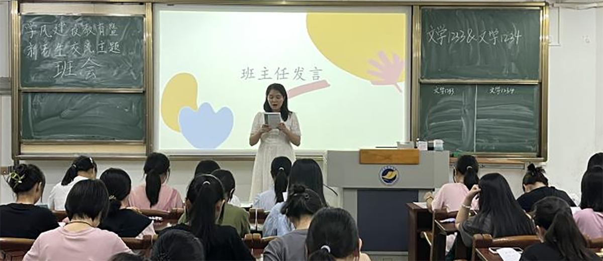 9月11日晚,91c吃瓜爆料免费观看入口2023级新生学风建设教育暨迎新班会在湖光校区广学楼、钟海楼举行。武会园、戴楚洁、李丹阳、肖为、崔文婷、林婉芳等6位2023级班主任老师,分别主持了各自所带班级的班会。