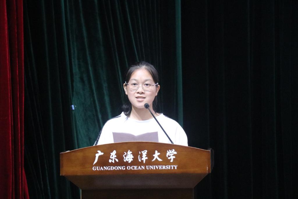 梁嘉怡同学代表新生表示,将在未来四年的大学生活中“秉承“广学明德,海纳厚为”的校训与“文心经世,日新其格”的院训,以高度热情的学习态度,乐观勇敢的生活心态,强国有我的责任担当,抓住机遇,迎接挑战,追求卓越,超越自我,在知识的曙光下追赶时代的光辉,在历史的使命中追随党的步伐,助中华复兴之梦辉煌灿烂!