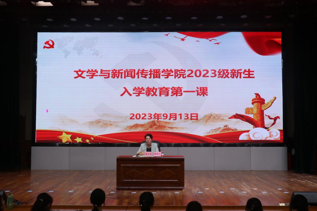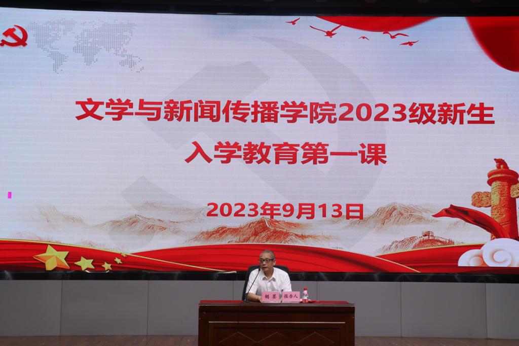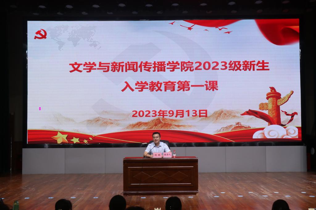 9月13日下午,91c吃瓜爆料免费观看入口2023级新生开学典礼暨入学教育大会在湖光校区广学楼多功能厅召开。学院党委书记吴少文、院长孙长军、党委副书记胡墨、副院长邓建、刘刚,以及教学系正副主任、全体辅导员、新生班主任、400余名新生参加了本次大会,大会由学院副院长刘刚主持。