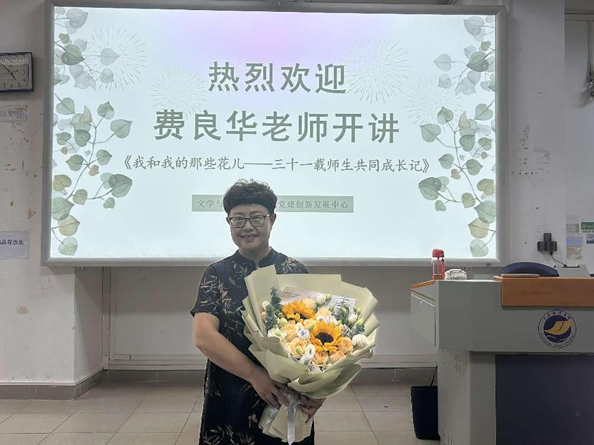 费良华副教授以《我和我的那些花儿——三十一载师生共同成长记》为题,为我院师生带来了新一场的视觉盛宴,通过分享其三十一年来教学生涯里难忘的故事、典型的案例和深刻的感悟等,揭示了教育教学活动不仅是教师教书育人、培养学生成才的过程,也是学生反作用于教师、促进教师进步的过程。在教与学的互动中,教师和学生共同成长进步,教师的言传身教会影响学生的人生道路,学生的反馈会影响教师的职业生涯。师生之间的关系密不可分,师生之间的情谊深厚而纯粹。她的这种教育理念,深深地影响了在场的每一位师生,开启了我们对教师和学生关系以及教育的真正意义的新思考。