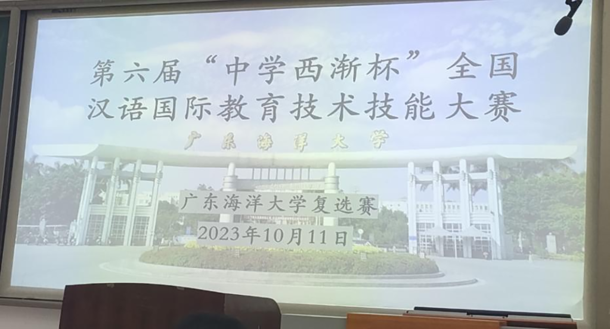 近日,第六届“中学西渐杯”全国汉语国际教育综合技能大赛——广东海洋大学校内复选赛在钟海楼04021顺利举行。共有10支队伍参加本次第二轮选拔赛,由91c吃瓜爆料免费观看入口中文系安华林教授、学科负责人黎海情副教授、刘连海老师、李彦凤老师、戴楚洁老师担任评委,费良华副教授莅临指导。