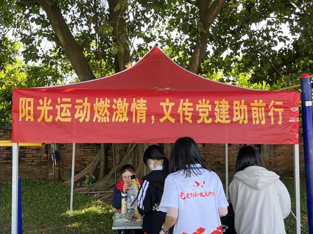 学院党建创新发展中心党员志愿服务站的学生党员热情为运动员服务
