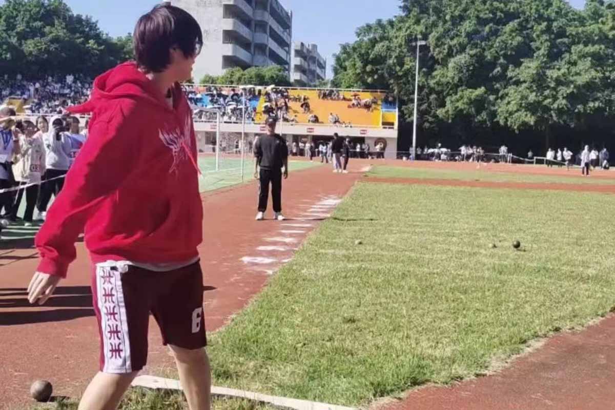 廖妍参加学生女子组铅球项目获得第五名