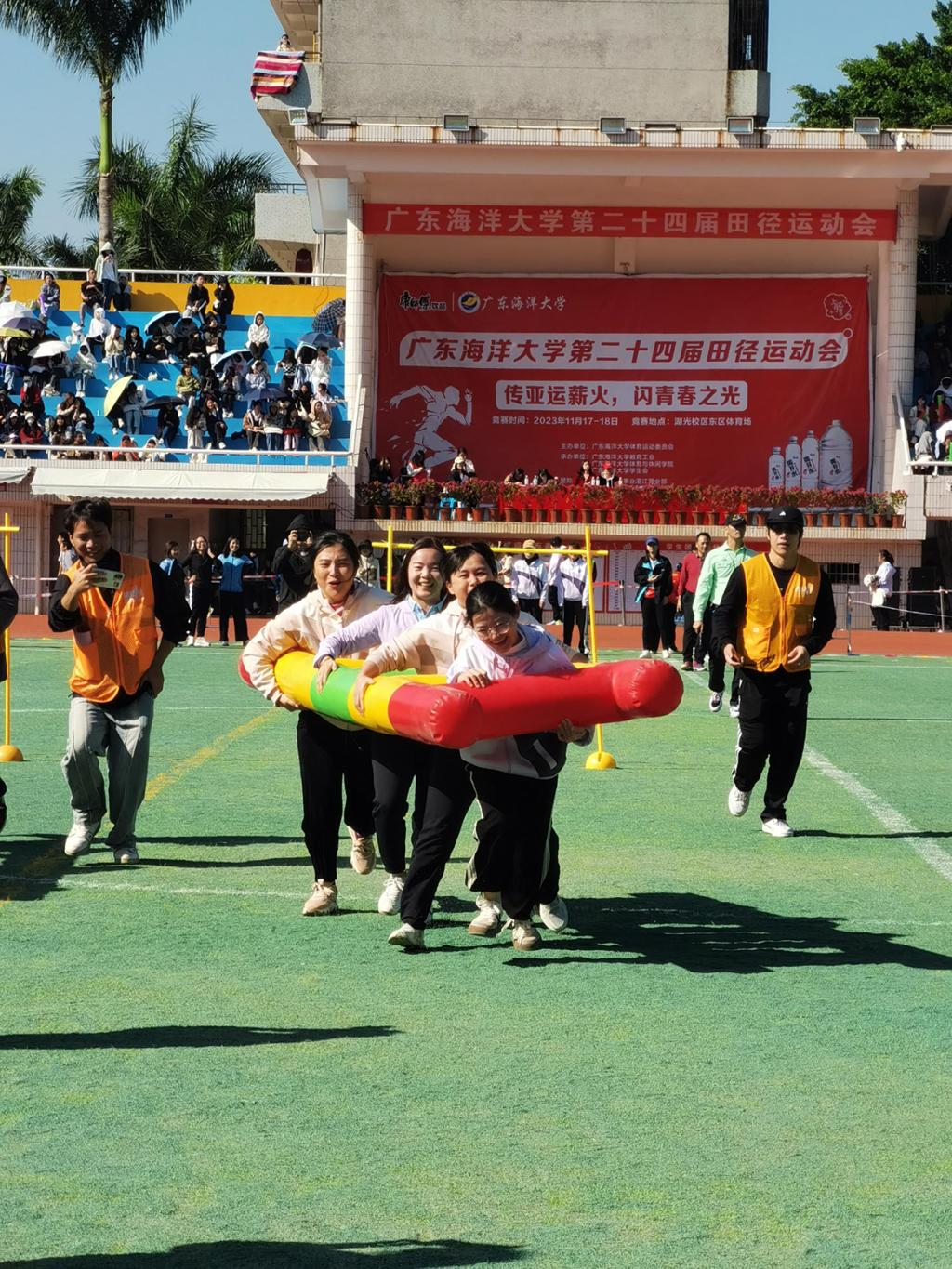 11月17~18日,全校第二十四届田径运动会于湖光校区东区体育场隆重举行。这是疫情结束后的首届校运会,在学院党政一把手的亲自动员和参与下,在院工会和学生组织的精心组织和热心服务下,文传学院参加了教工组全部集体项目以及5个个人项目,学生参加的项目也比上届明显增多,师生参加项目数为学院近年之最;特别是学院巾帼新锐力量敢于挑战耐力项目,学生获得女子短跑项目冠军,令人振奋。