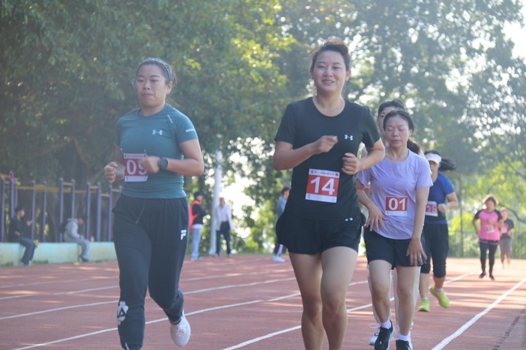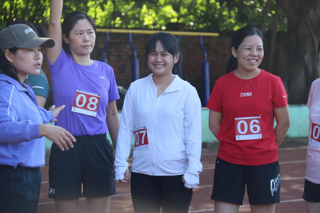 参加教工女子3000米项目的李丹阳(前右一)