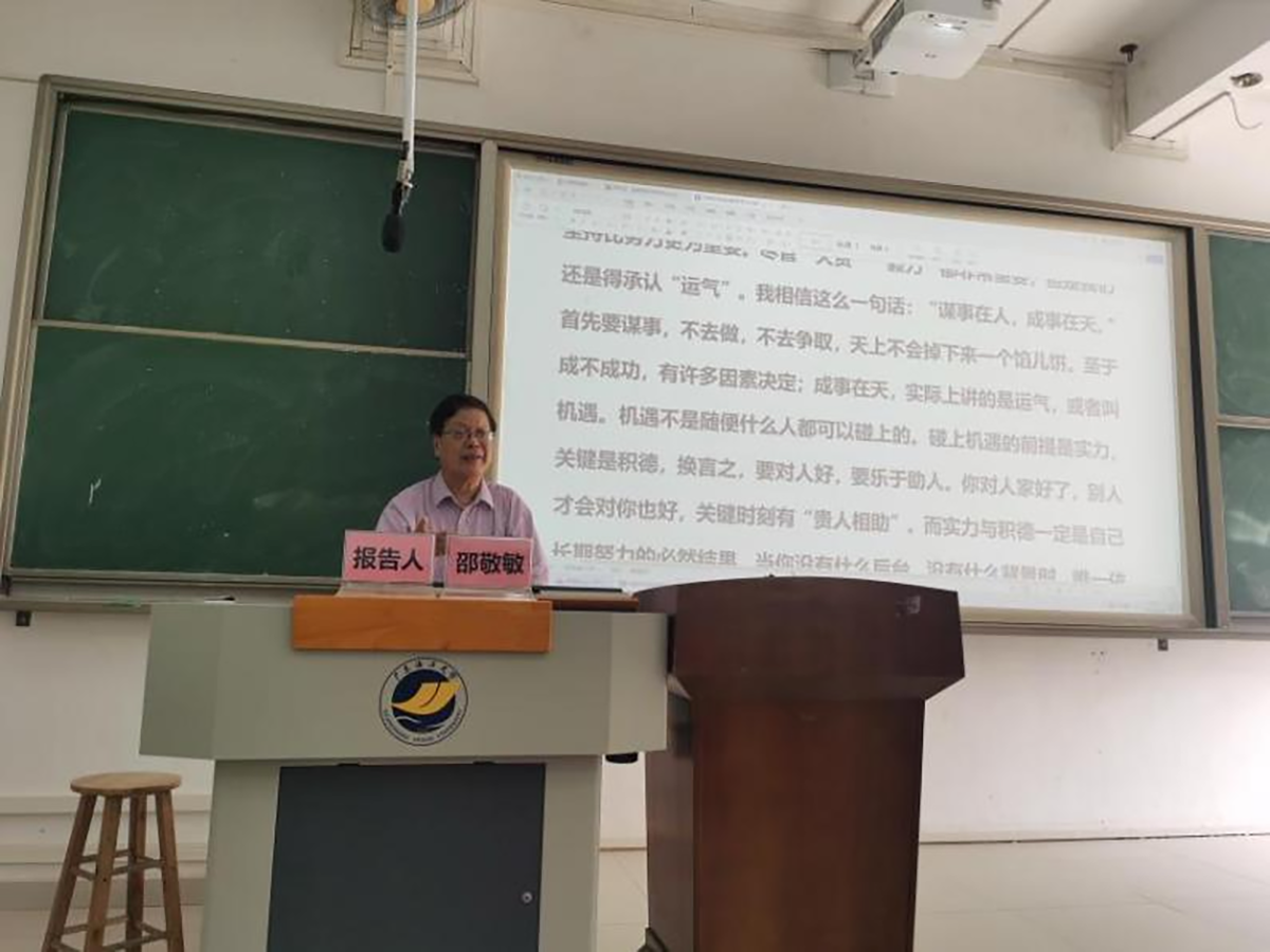 2023年12月15日上午,暨南大学文学院邵敬敏先生、赵春利教授莅临广东海洋大学文传学院,在钟海楼05021分别作了题为“追梦汉语之路”“研究方法与论文写作”两场学术报告。文传学院副院长邓建教授主持报告会,文传学院教授委员会主任安华林教授等十余位老师和150余名同学现场聆听了报告。