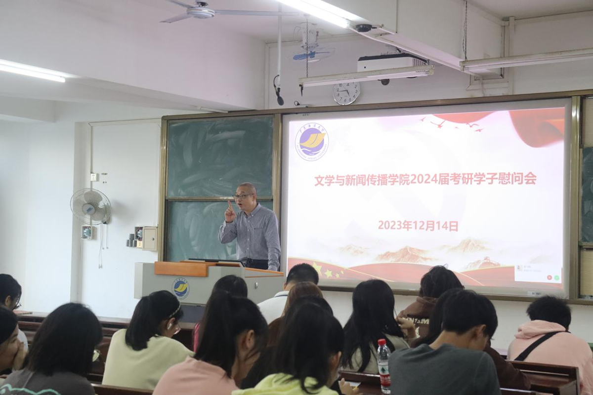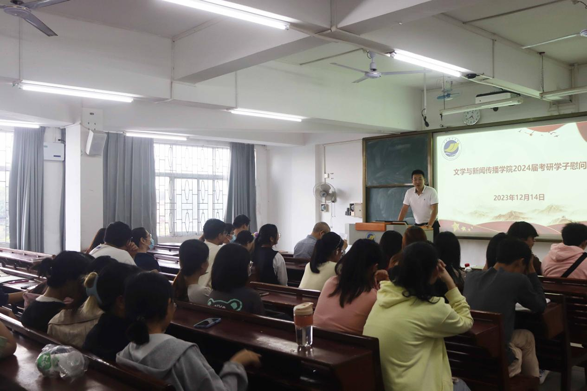 交流结束后,徐以国为本院所有考研学生现场派发了慰问券。亲切的交流,温馨的祝福,暖心的慰问券,为一周后就要走进考研考场的文院学子减了压、加了油、鼓了劲,同时也激励了全院学生备战期末考试的士气。