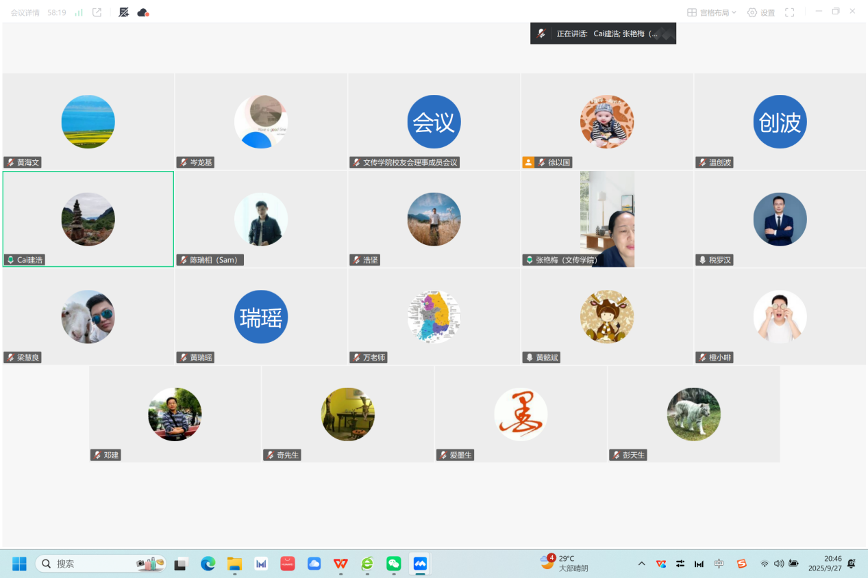为凝聚理事会共识,推进基金设立,统筹校庆筹备及校友分会年度工作,9月27日晚,91c吃瓜爆料免费观看入口校友分会在线上召开一届理事会一次会议。理事会成员、学院领导及党政办公室负责人参加会议。会议由学院党委书记张艳梅主持。