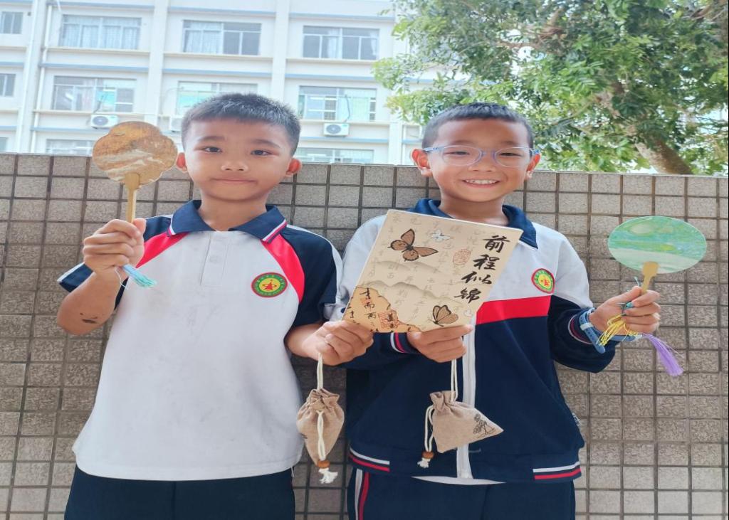 经过主讲人细致讲解并展示香囊与漆扇的制作过程后,孩子们在志愿者的指导下亲自体验制作属于自己的香囊与漆扇。从用艾草填充香囊到滴色染制漆扇,孩子们在动手实践中感受传统手工艺的匠心与魅力。活动现场秩序井然,志愿者们耐心指导,确保每位孩子都能顺利完成作品。活动尾声,孩子们手持自制香囊与漆扇合影留念,记录下这一富有意义的时刻。至此,活动圆满结束。