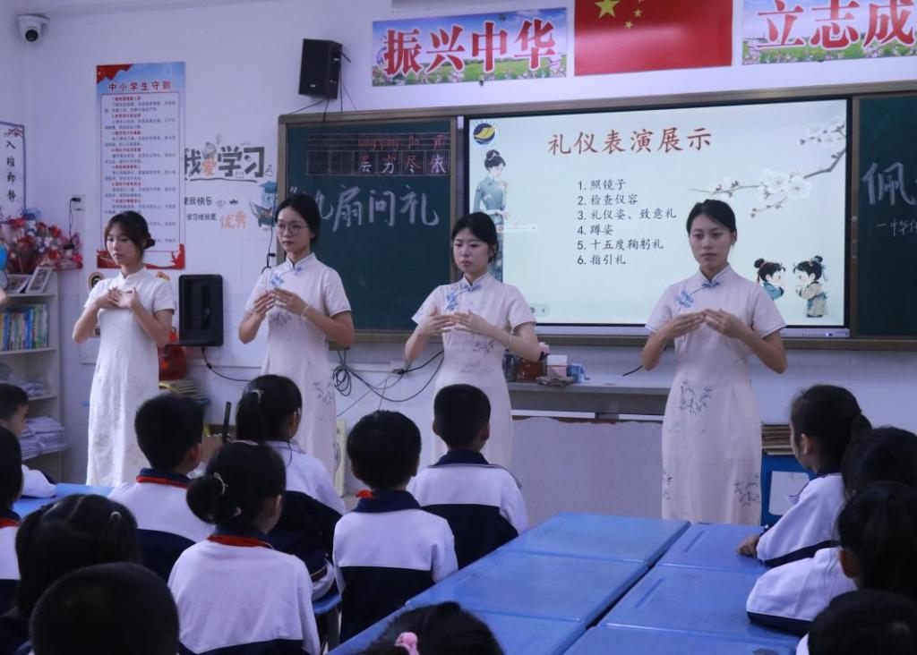 活动在礼仪队的传统礼仪表演中拉开序幕。礼仪队同学身着优雅的旗袍,进行规范的礼节展示,令在场学生直观感受到中华礼仪之美。随后,主讲人配合精美的PPT,生动讲解了传统礼仪的文化内涵,并开展知识问答互动,孩子们踊跃参与,现场气氛热烈。