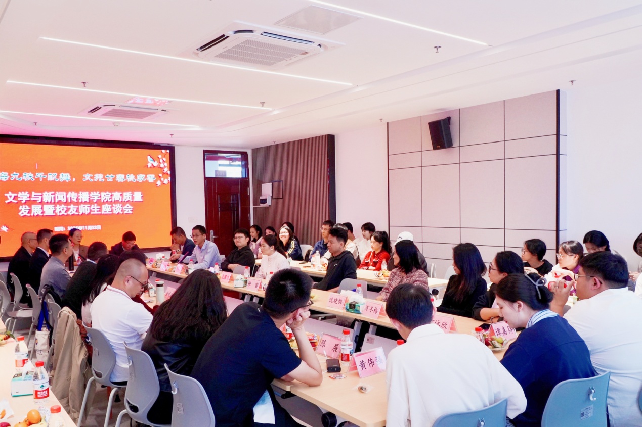 学院党委书记张艳梅、党委副书记、院长邓建、党委副书记胡墨,以及文传学院部分资深教师代表出席座谈会,来自各行各业的优秀校友及本院师生代表共50余人参加了座谈会。座谈会由张艳梅主持。