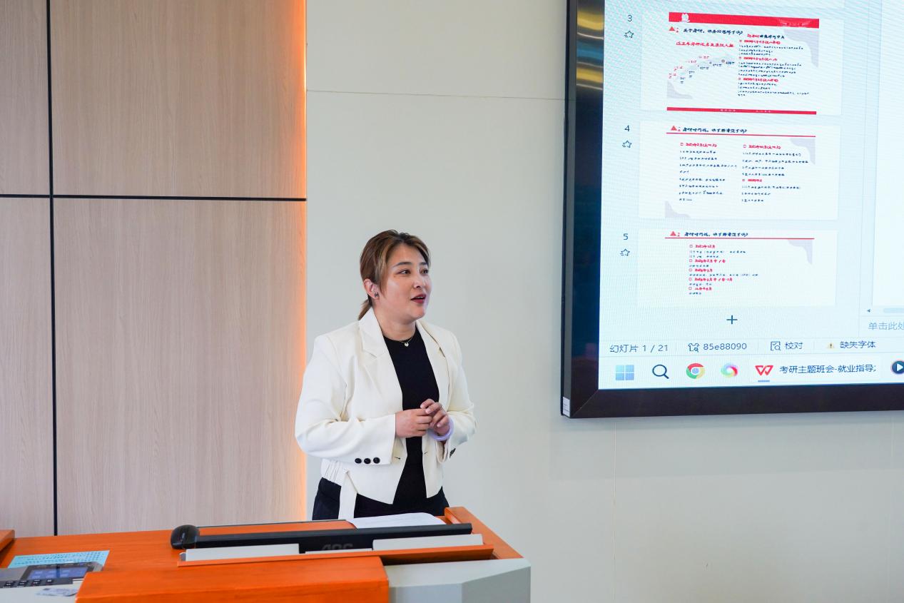 新闻系副主任李丹阳随后重点围绕复试环节进行指导。她结合多年带学生复试的经验,鼓励大家在面试时一定要大胆、自信,尤其是英语口语环节,“哪怕语法不完美,也比支支吾吾、沉默不语强百倍”。她强调,考官更看重的是逻辑表达能力、真实态度和对专业的热爱,而不是发音是否标准。常见问题(如为什么跨考、未来规划等)要形成自己的标准答案。面试时要保持微笑、直视老师、语速适中,“自信本身就是最大的加分项”。
