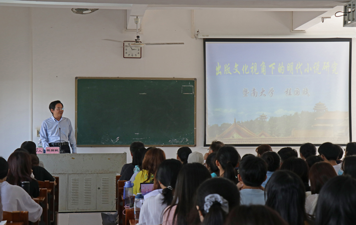 11月23日下午,教育部“长江学者”特聘教授、暨南大学文学院院长程国赋教授莅临我校文传学院,在第二教学楼B1-202教室作了题为“出版文化视角下的明代小说研究”的学术报告。报告由文传学院院长孙长军教授主持,师生130余人聆听了报告。