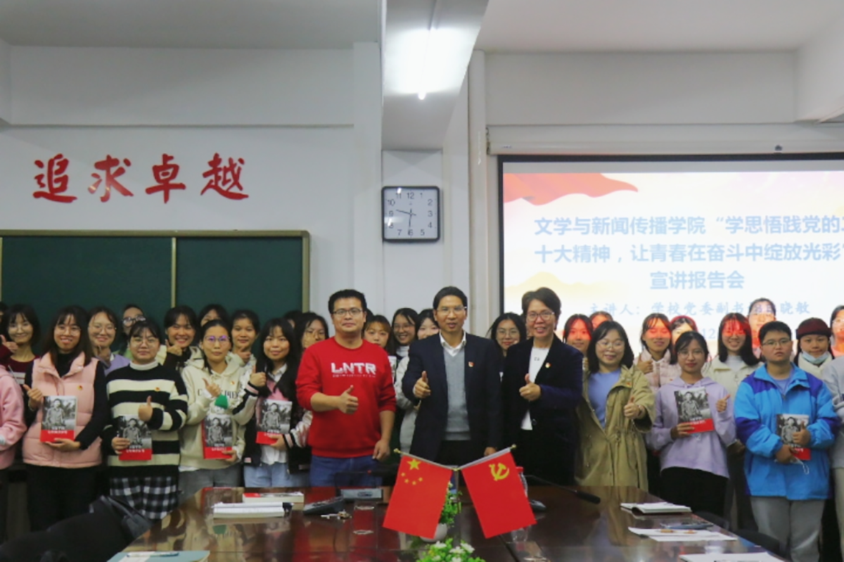 宣讲报告会结束后还举行了赠书仪式。林晓敏将《习近平的七年知青岁月》一书亲手赠送给现场的每一位学生党员,勉励大家好好读书,从习近平总书记的成长经历中汲取理想信念、为民情怀、艰苦奋斗、使命担当等精神养分,做有理想、敢担当、能吃苦、肯奋斗的新时代好青年,让青春在奋斗中绽放光彩!并与同学们合影留念。