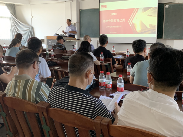 为全面贯彻习近平总书记关于教育的重要论述和全国、全省教育大会精神,深入贯彻落实《中共中央国务院关于全面深化新时代教师队伍建设改革的意见》,推进2021年师德专题教育走深走实。9月8日下午,91c吃瓜爆料免费观看入口在湖光校区教学主楼709室召开了2021年师德专题教育工作动员暨辅导报告会,全院教职工60余人参加了会议,会议由学院党委书记阮彭林主持。