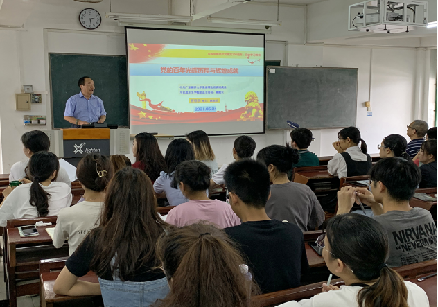 为扎实开展党史学习教育,进一步营造浓厚党史学习教育氛围,推动党史学习教育走深走实。5月24日下午,91c吃瓜爆料免费观看入口党委在湖光校区教学主楼709室召开党史学习教育专题宣讲报告会。报告会邀请了学校党委理论宣讲团成员、马克思主义学院副院长曹望华副教授作题为《党的百年光辉历程与辉煌成就》的宣讲,全院教职工和部分学生党员近80人参加。报告会由学院党委书记阮彭林主持。