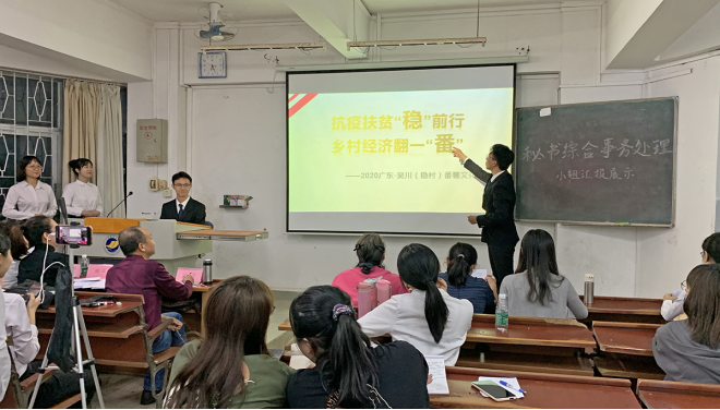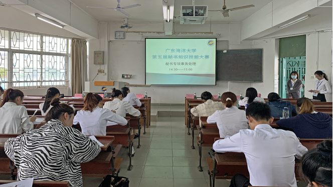 10月25日下午,由校团委主办,文传学院团委、秘书学教研室共同承办的“广东海洋大学2020年秘书知识技能大赛决赛”于湖光校区教学主楼成功举办。秘书学专业负责人汪东发教授以及秘书学教研室朱欣文、邱天、陈志敏、高博、刘霞、周思明等老师担任大赛评委。