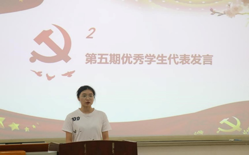 第五期青马班优秀学员胡榕芝在仪式上总结了自己在青马班学习的收获与不足,并勉励下一期青马工程培训班的学员努力学习,争取更大的收获。