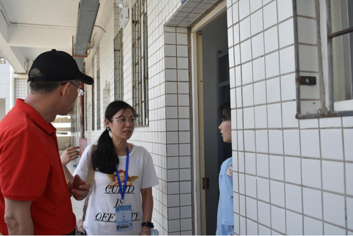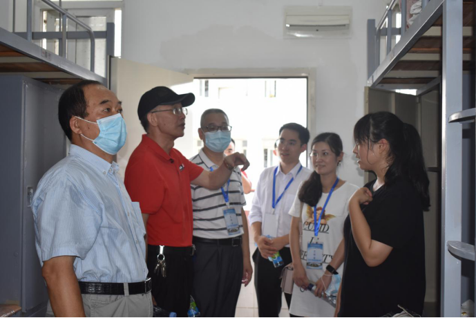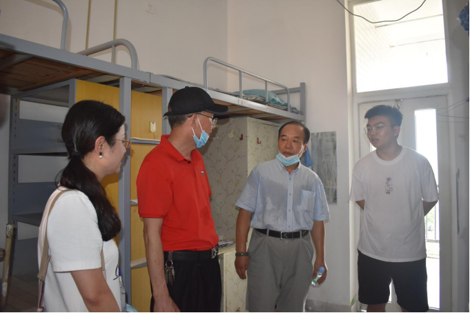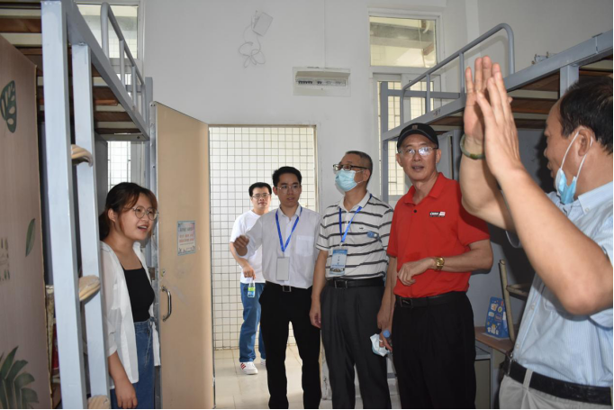 随后,院领导跟随志愿者的指引,深入探访学生宿舍,分别到达女生宿舍海浪大院,男生宿舍海乐大院,实地查看宿舍大院进出防控检测、学生住宿及卫生消毒等情况。在宿舍与新生进行交流,详细了解新生生活方面的需求,并欢迎他们来到海大,成为海大的一分子。